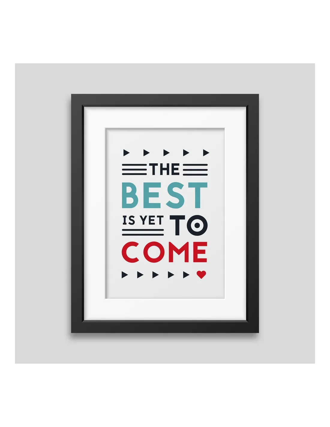 The best is yet to come! Give your walls a voice with a framed poster. This aesthethic, optimistic poster will look great in your desk or in an open-space office. Painted wooden frame with passe-partout for more depth.