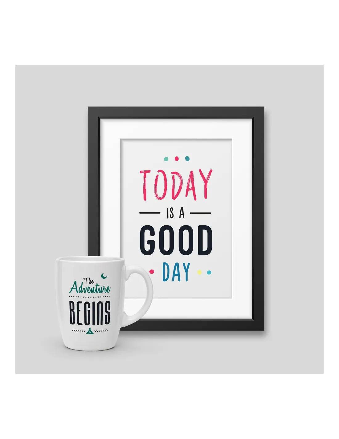 Mug The Adventure Begins + Framed poster Today is a good day 40x60cm